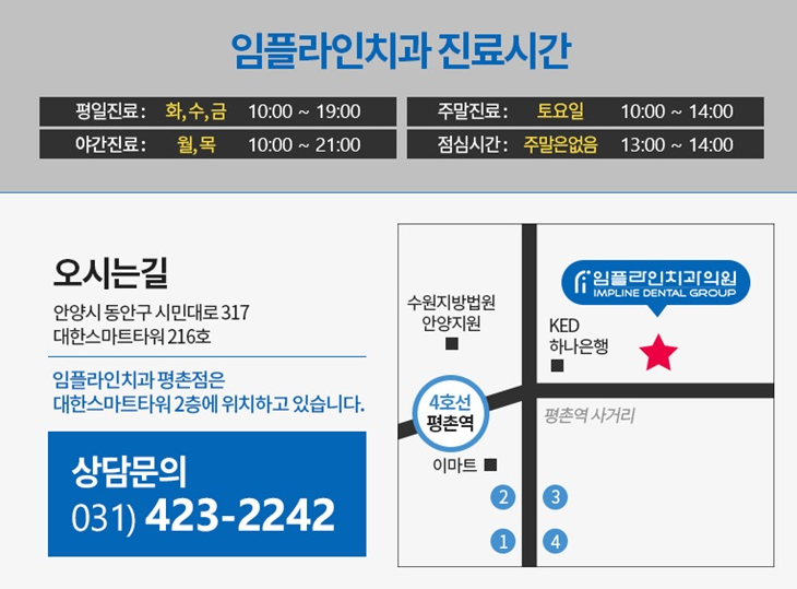 상호명 : 임플라인치과의원 평촌점 대표 :김우람 사업자등록번호 : 447-16-00272