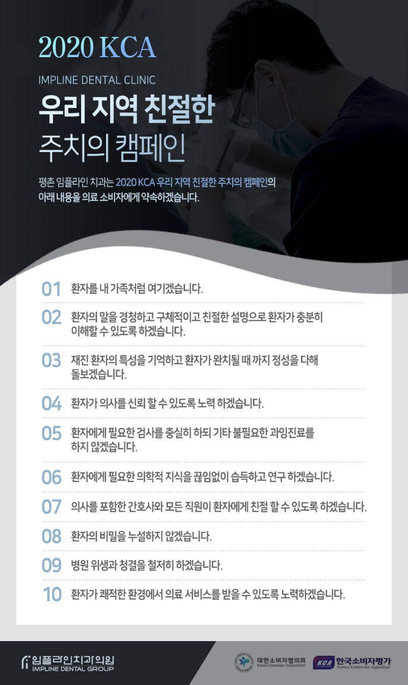 한국소비자평가 주치의 캠페인 임플라인치과 선정
